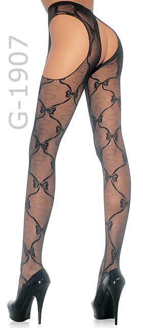 Sheer Black Bow Lace Suspender Pantyhose 1907
